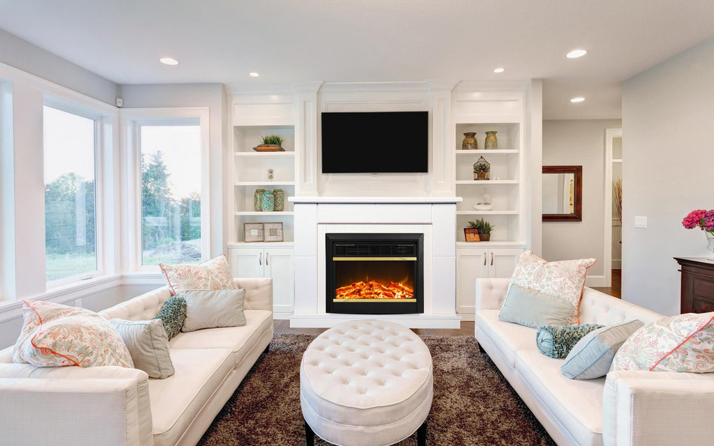 Camino Elettrico da Pavimento 84,5x110x30 cm Effetto Fiamma 1500W Maxim & Mars Bianco