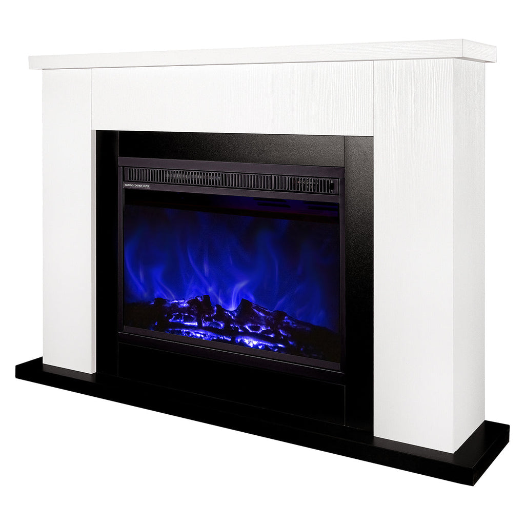 Camino Elettrico da Pavimento 85,5x115x27 cm Effetto Fiamma 1500W Brooklyn & Lorance Bianco/nero