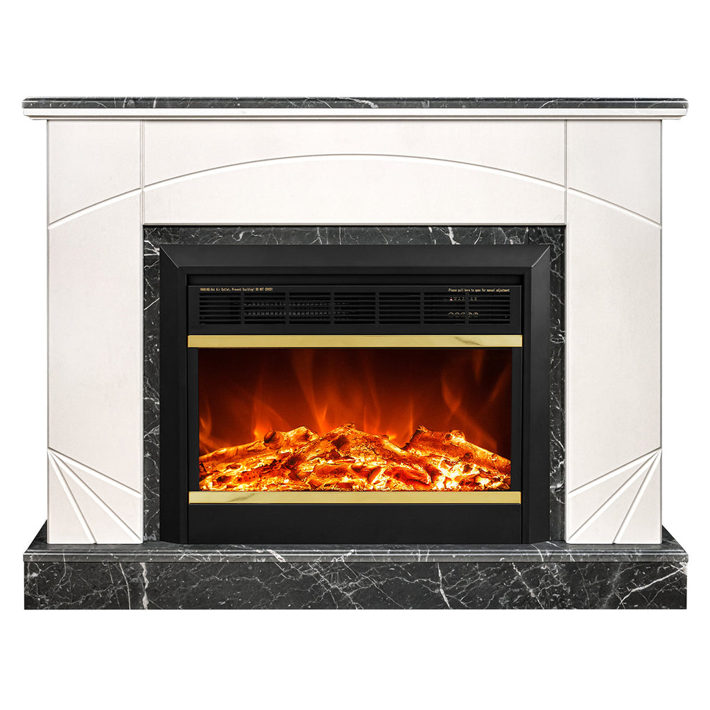 Camino Elettrico da Pavimento 85x110x27 cm Effetto Fiamma 1500W Madeira lux & Mars Ivory/dark gray