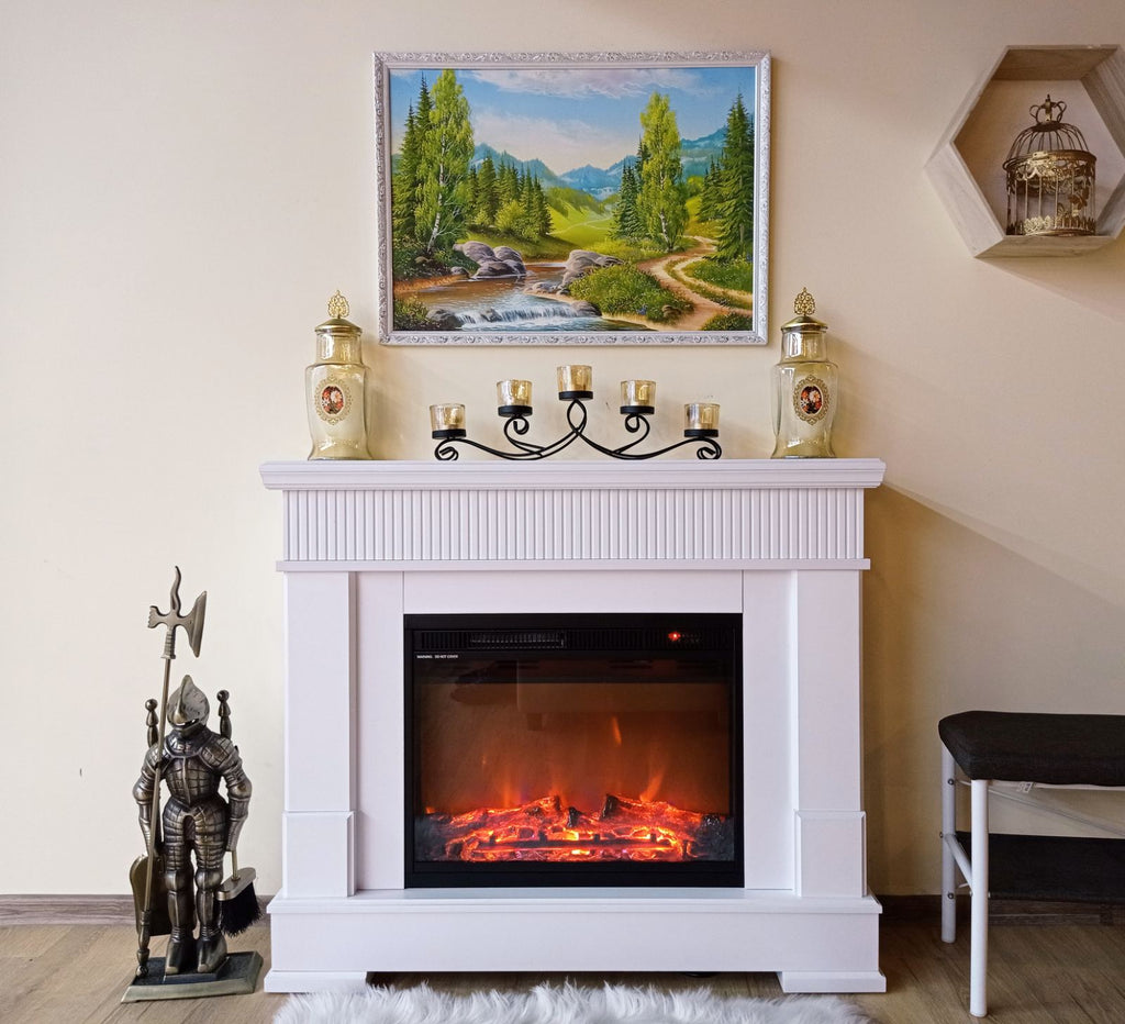 Camino Elettrico da Pavimento 88,2x104,4x27,9 cm Effetto Fiamma 1500W Ideal & Lorance color Bianco