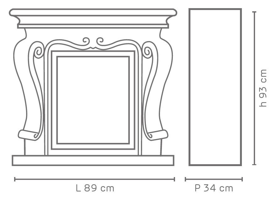 Il camino è composto da un inserto elettrico in acciaio e una struttura in polyform, la struttura si presenta già assemblata.
