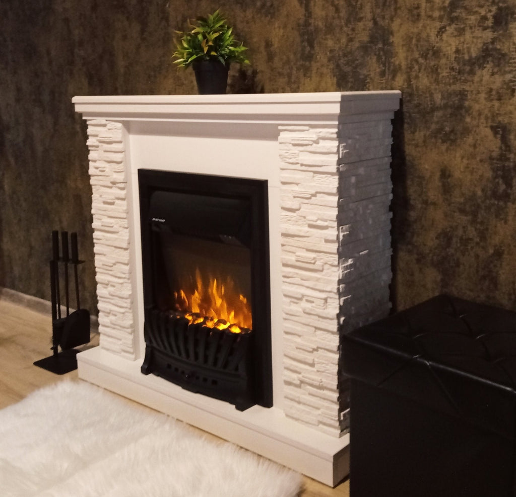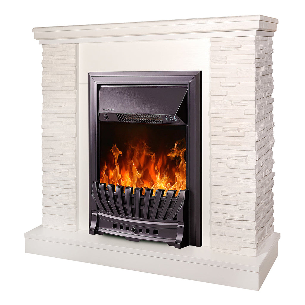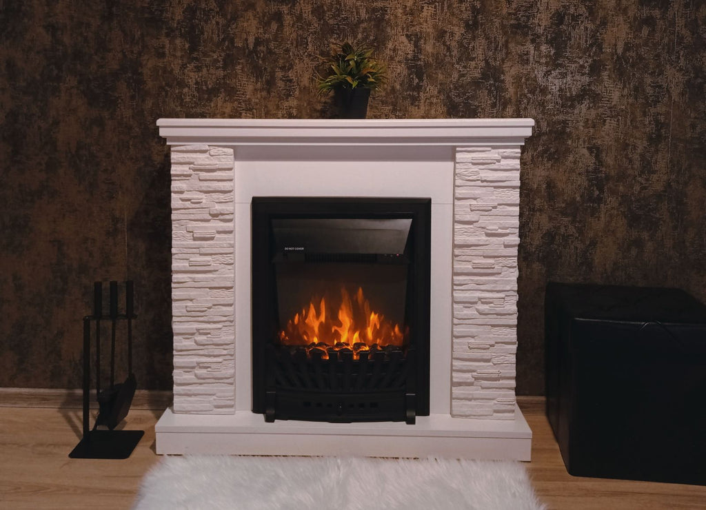 Camino Elettrico da Pavimento 90,3x98x30 cm Effetto Fiamma 2000W Rock & Pluton Noce