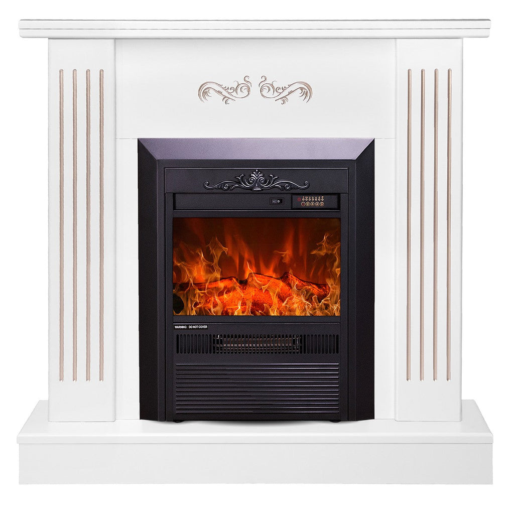 Camino Elettrico da Pavimento 90,5x94x26,5 cm Effetto Fiamma 2000W Smile & Cristina Bianco