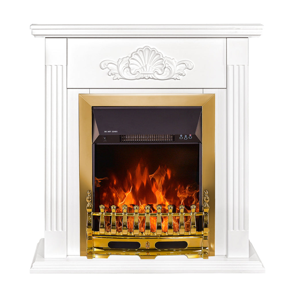 Camino Elettrico da Pavimento 90x90x27 cm Effetto Fiamma 2000W Sorina & Galileo gold Bianco