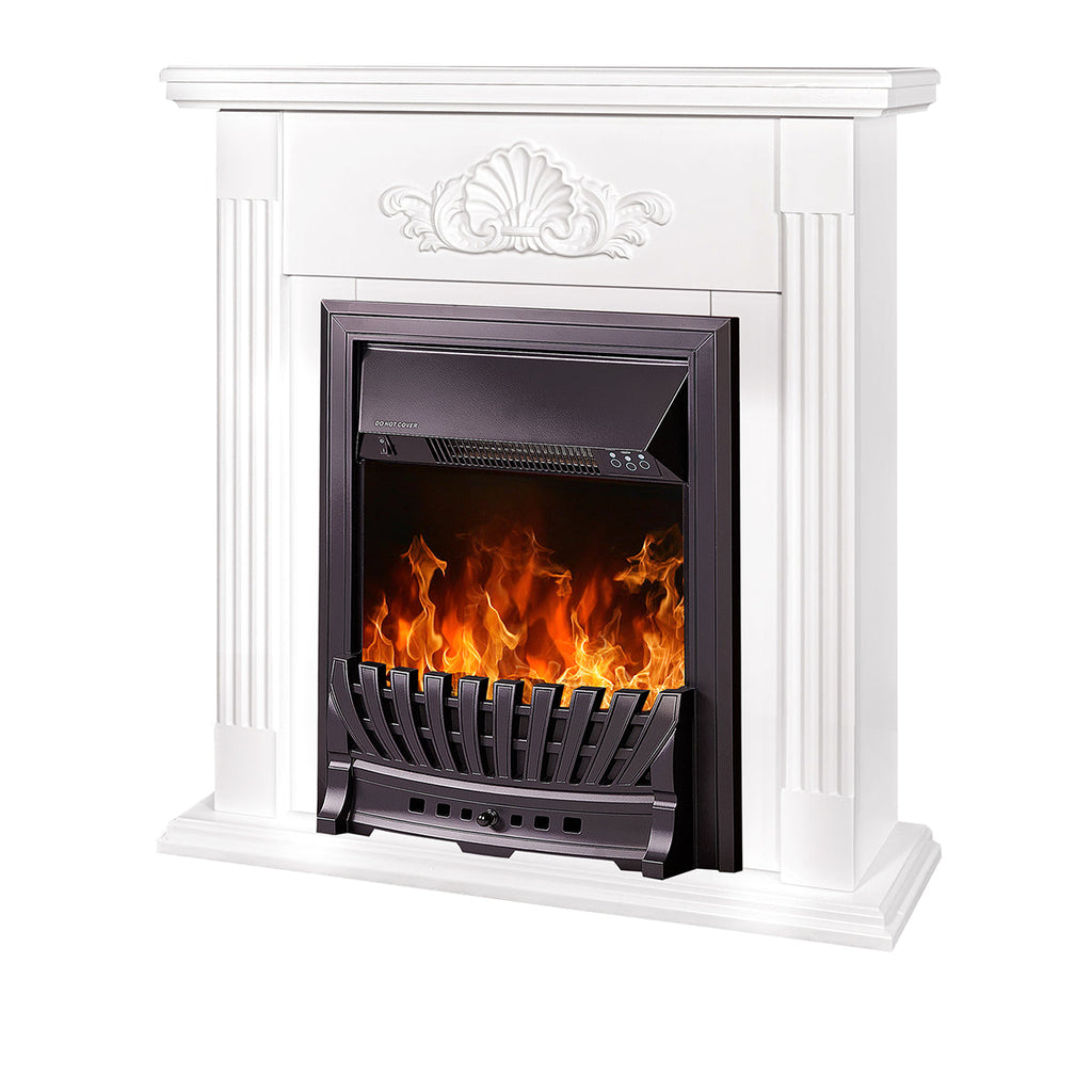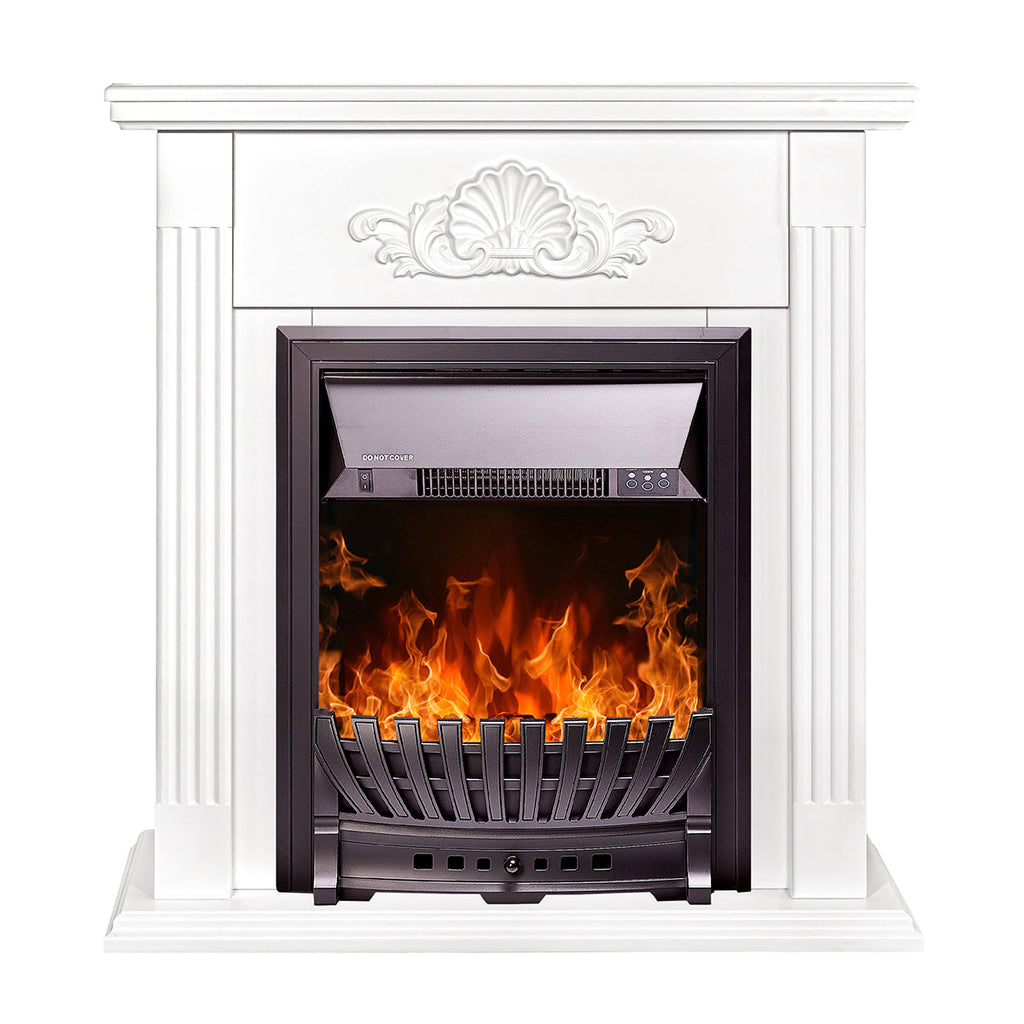 Camino Elettrico da Pavimento 90x90x27 cm Effetto Fiamma 2000W Sorina & Pluton Bianco
