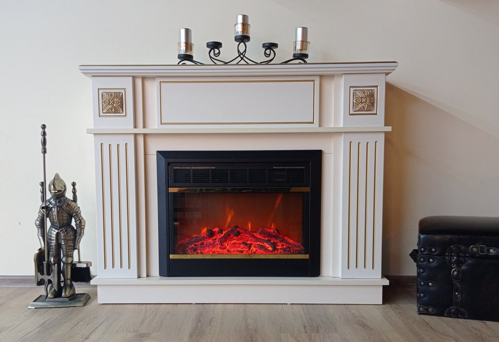 Camino Elettrico da Pavimento 92,9x120x28 cm Effetto Fiamma 1500W Miracle & Mars Avorio