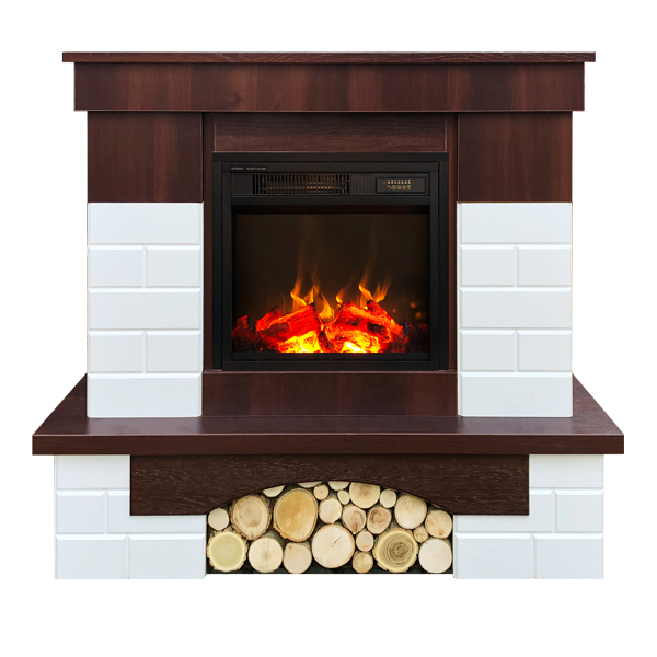 Camino Elettrico da Pavimento 95,8x109,6x28 cm Effetto Fiamma 1100W Leon & Dionis Bianco/noce scuro