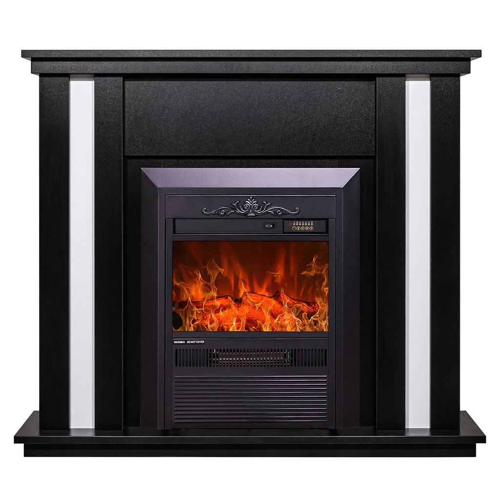 Camino Elettrico da Pavimento 95x110x27 cm Effetto Fiamma 2000W Gustavo & Cristina Nero/bianco
