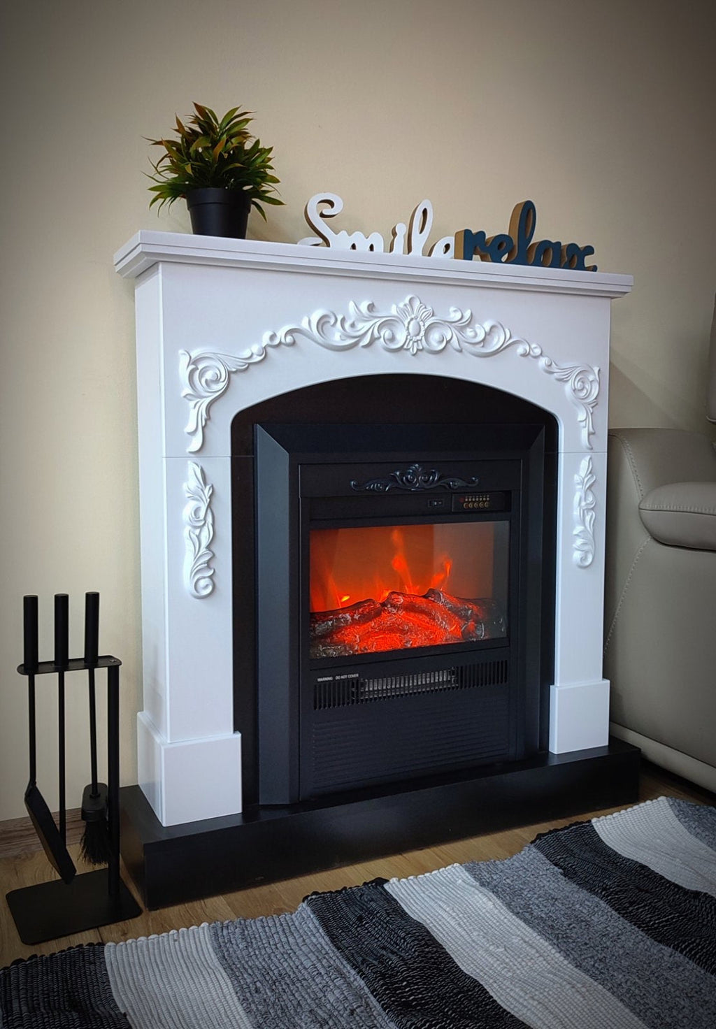 Camino Elettrico da Pavimento 97,5x90x25 cm Effetto Fiamma 2000W Casanova & Cristina Bianco/nero
