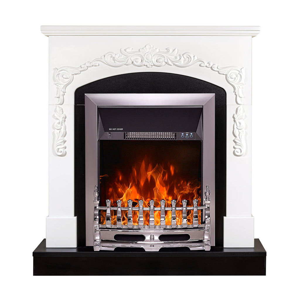 Camino Elettrico da Pavimento 97,5x90x25 cm Effetto Fiamma 2000W Casanova & Galileo silver Bianco/nero