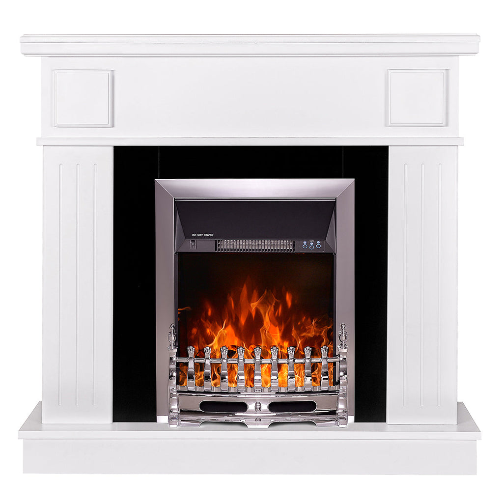 Camino Elettrico da Pavimento 99,7x103,4x27 cm Effetto Fiamma 2000W Oscar & Galileo silver Bianco/nero