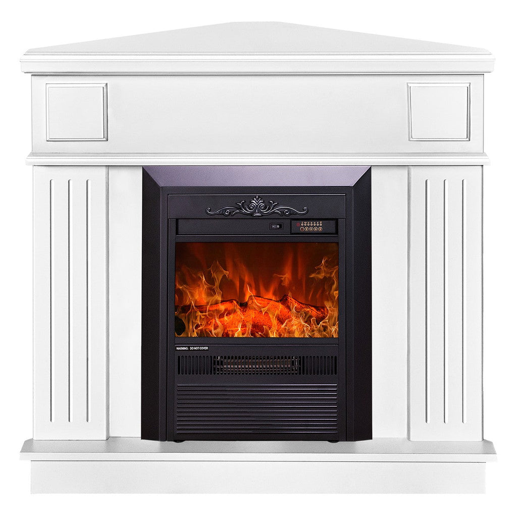 Camino Elettrico da Pavimento ad Angolo 100x100x50 cm Effetto Fiamma 2000W Marina & Cristina Bianco