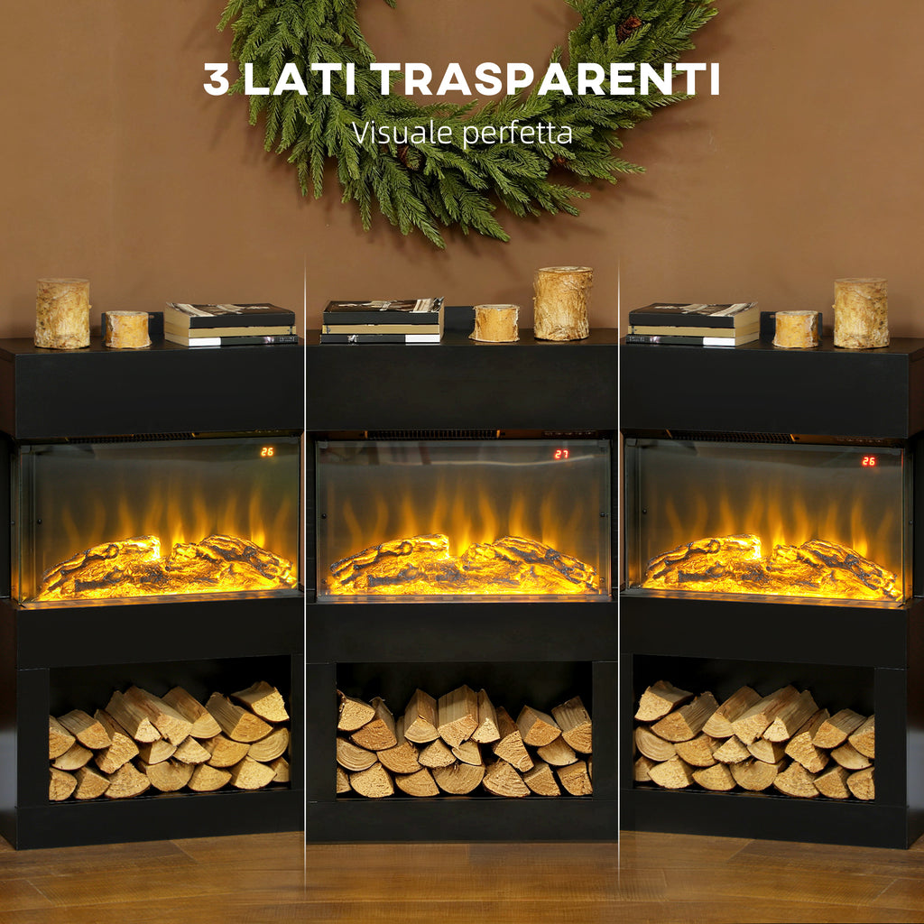 • EFFETTO FIAMMA 3D: Goditi le fiamme realistiche che brillano attraverso il vetro su tre lati di questo camino elettrico. Scegli tra sei opzioni di colore e tre livelli di luminosità, arricchiti da una base con finti ceppi di legno che ardono