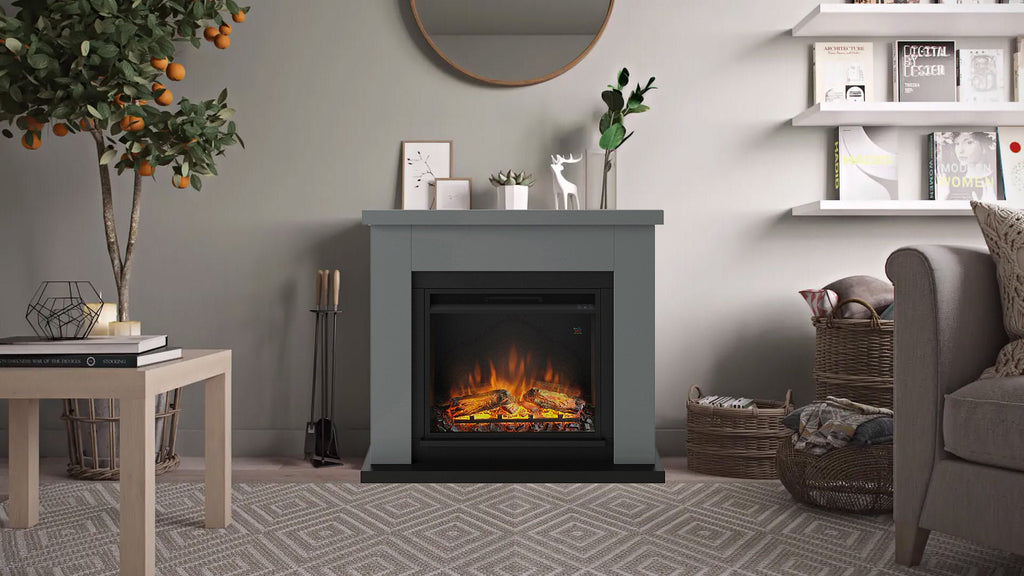 Camino Elettrico Frode con Cornice Legno Caminetto 1500W con Inserto per Camino Elettrico da 23 pollici, Telecomand, Colore Grigio Scuro [Classe di efficienza energetica A].