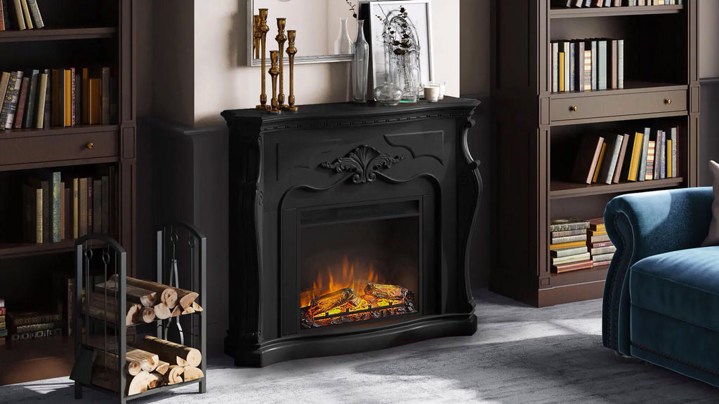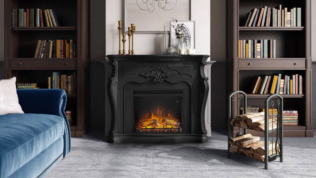 Camino Elettrico Gala con Cornice Legno Caminetto 1500W con Inserto per Camino Elettrico da 23 pollici, Telecomando, Colore Nero.