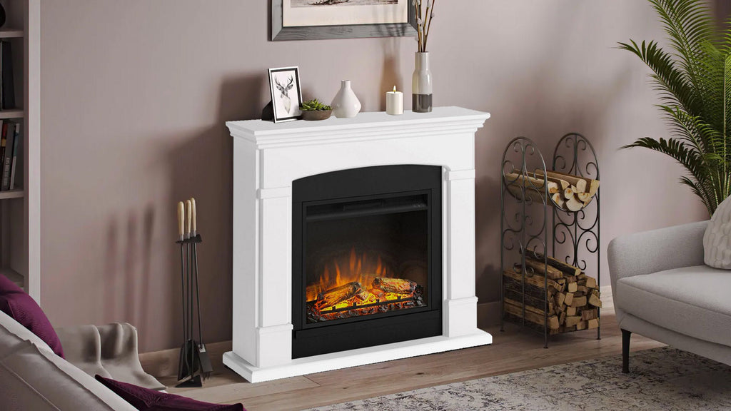 Camino Elettrico Helmi con Cornice Legno Caminetto 1500W con Inserto per Camino Elettrico da 23 pollici, Telecomando, Colore Bianco.