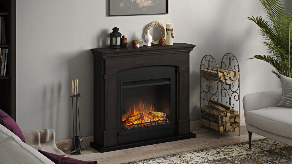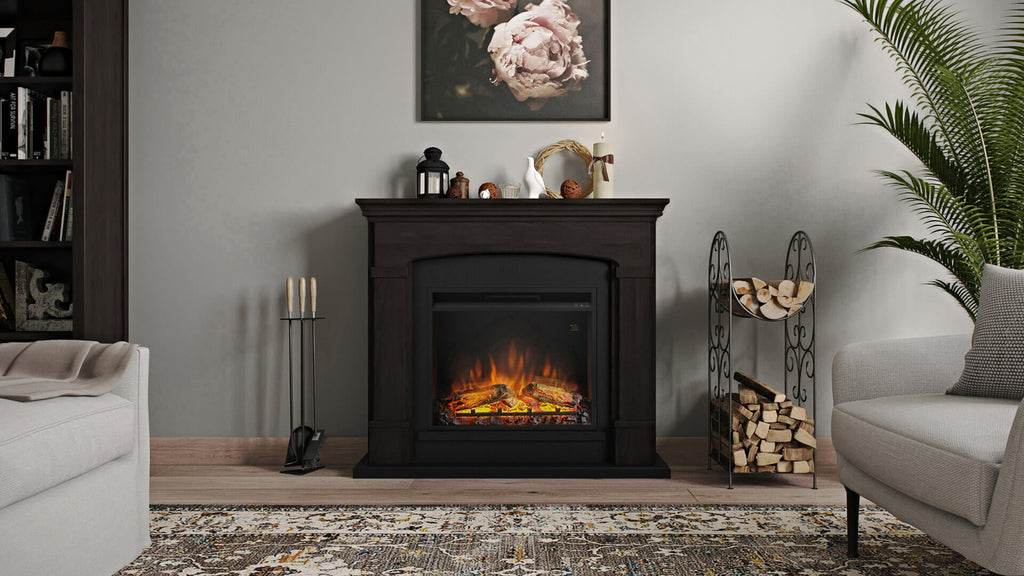 Camino Elettrico Helmi con Cornice Legno Caminetto 1500W con Inserto per Camino Elettrico da 23 pollici, Telecomando, Colore Espresso Wengè.