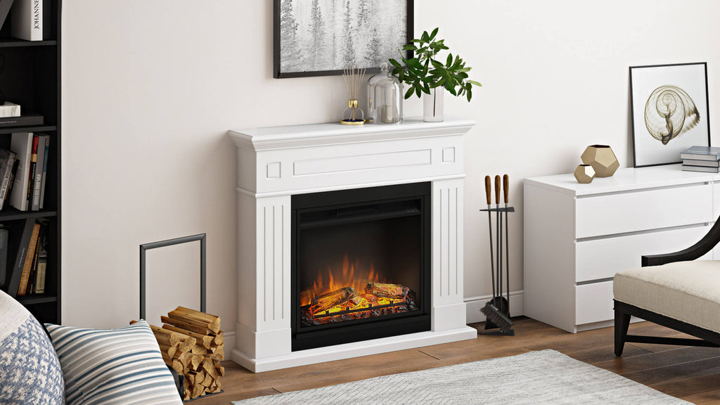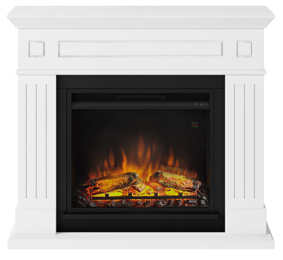 Camino Elettrico Larsen con Cornice Legno Caminetto 1500W con Inserto per Camino Elettrico da 23 pollici, Telecomando, Colore Bianco [Classe di efficienza energetica A].