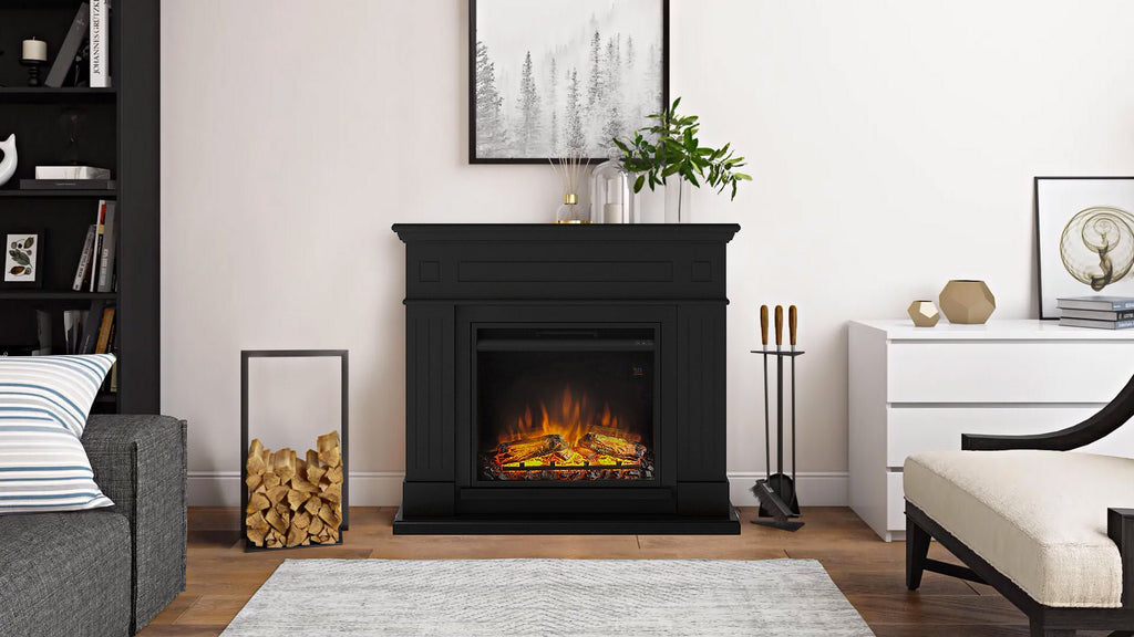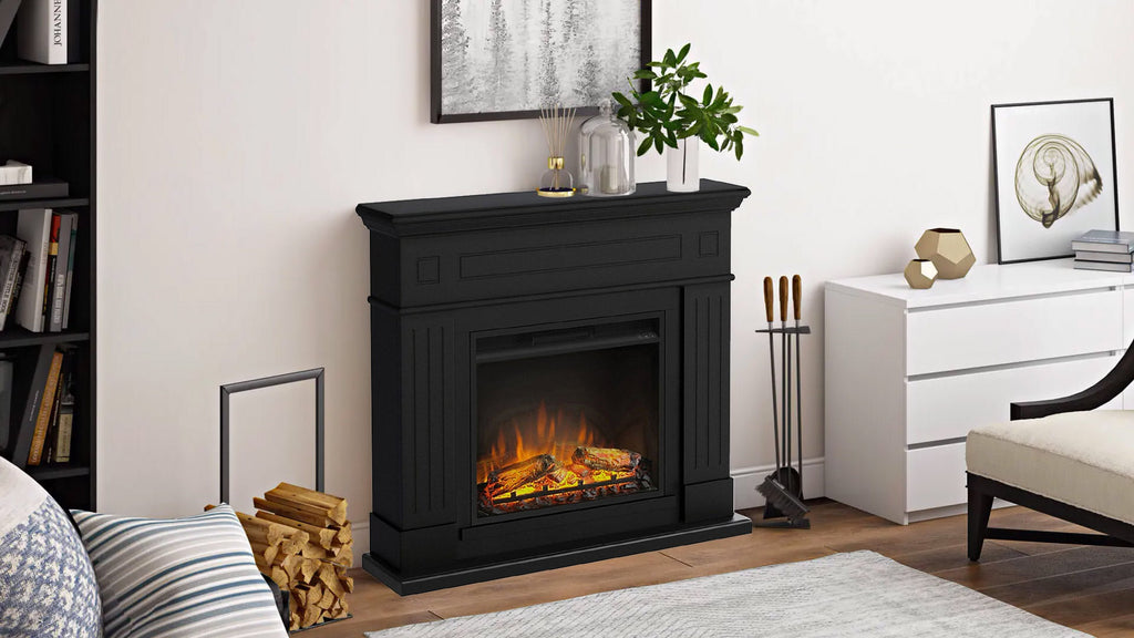 Camino Elettrico Larsen con Cornice Legno Caminetto 1500W con Inserto per Camino Elettrico da 23 pollici, Telecomando, Colore Nero [Classe di efficienza energetica A].