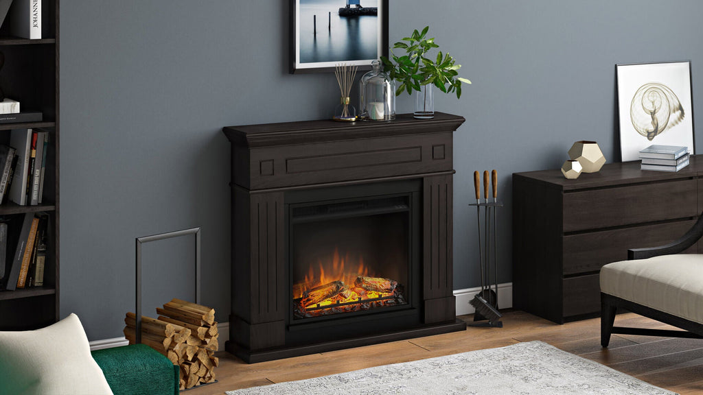 Camino Elettrico Larsen con Cornice Legno Caminetto 1500W con Inserto per Camino Elettrico da 23 pollici, Telecomando, Colore Wengè [Classe di efficienza energetica A].