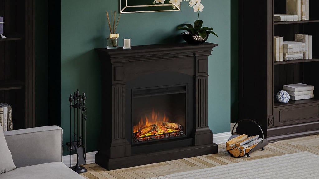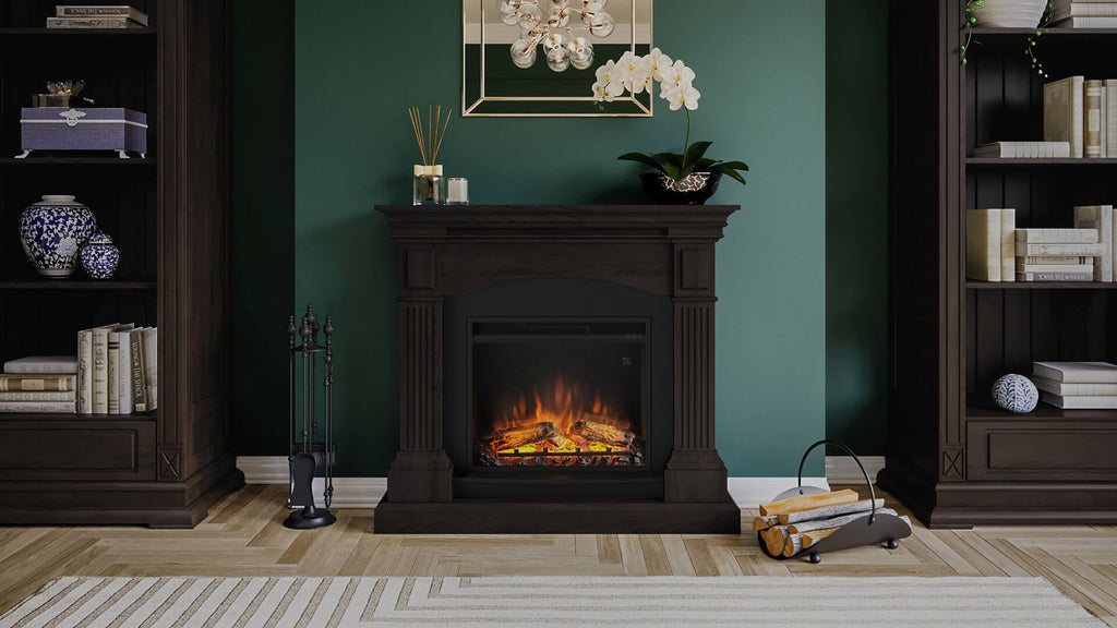 Camino Elettrico Magna con Cornice Legno Caminetto 1500W con Inserto per Camino Elettrico da 23 pollici, Telecomando, Colore Espresso Wengè.