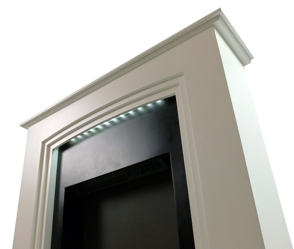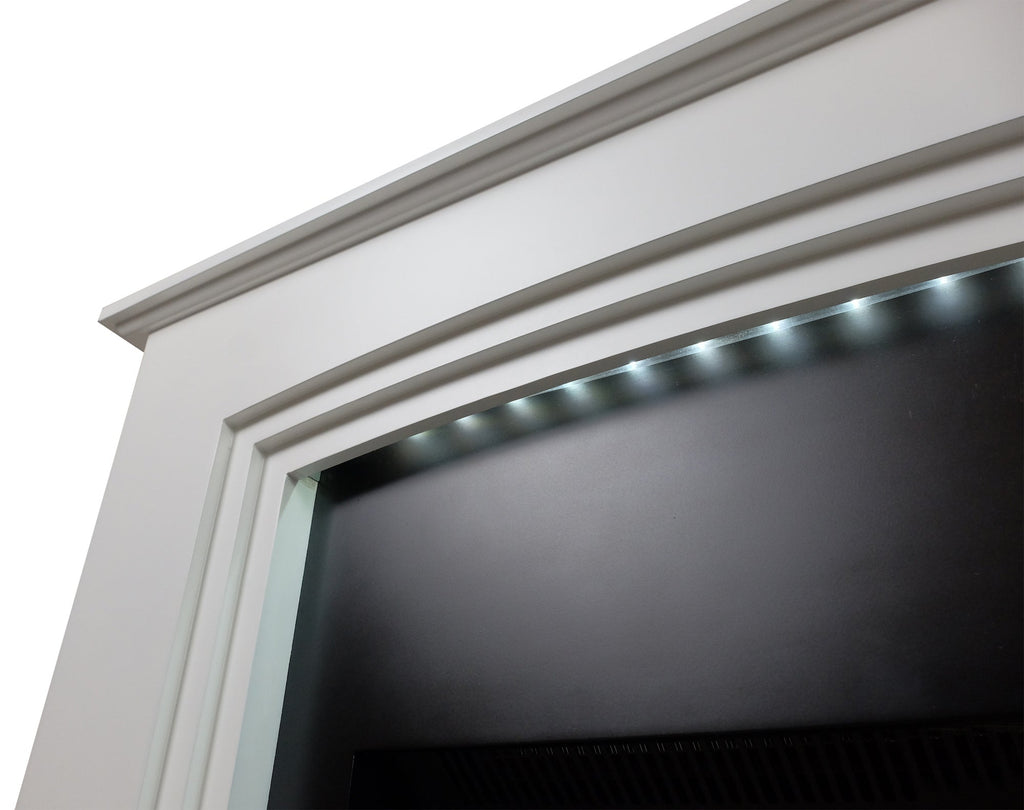 - Insert di striscia leds sotto la tavoletta che illumina il camino e sottolinea il suo design moderno