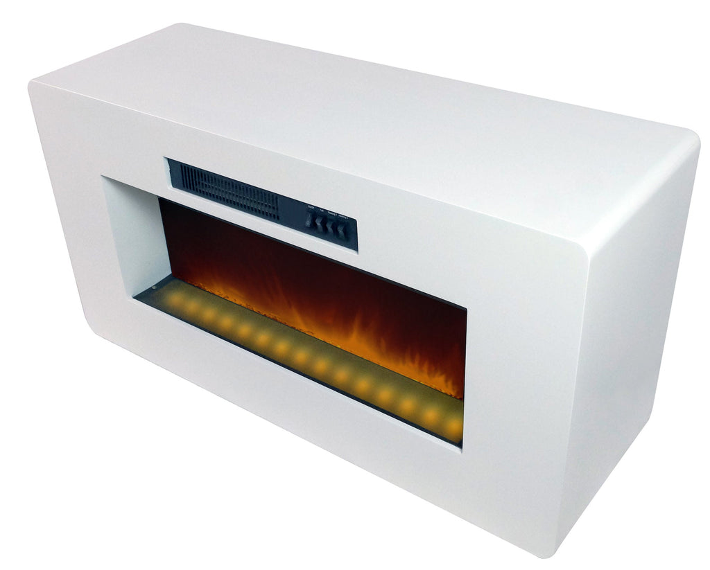 Caminetto elettrico da pavimento Meribel inserito in un mobile di legno bianco che si appoggia a terra e resiste ad un carico fino a 30 Kg come ad esempio un televisore. l'inserto elettrico totalmente sicuro perch senza combustione ma con un effetto fiamma ultra realistico adatto per riscaldare un ambiente fino a 30 metri quadri. Il camino Meribel diffonde tutto il calore e l'atmosfera di un vero camino senza produrre fumo n odori sgradevoli, di facilissimo montaggio, non richiede canna fumaria ed è subito pronto all'uso. Il Bruciatore elettrico con potenza 1000-2000W è a riscaldamento rapido con ventola incorporata, termostato di protezione anti surriscaldamento e pannello di controllo frontale.