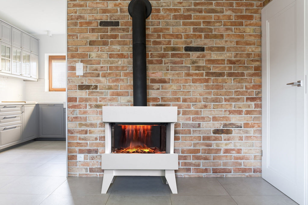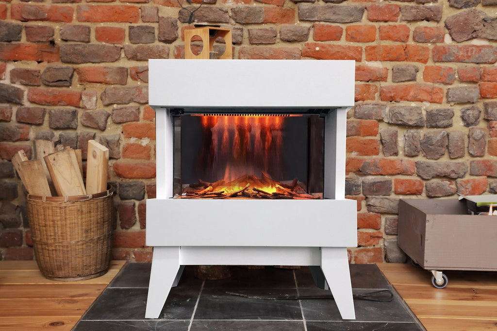 Camino Elettrico da Pavimento Effetto Fiamma 2000W CheminArte Vidrio Bianco