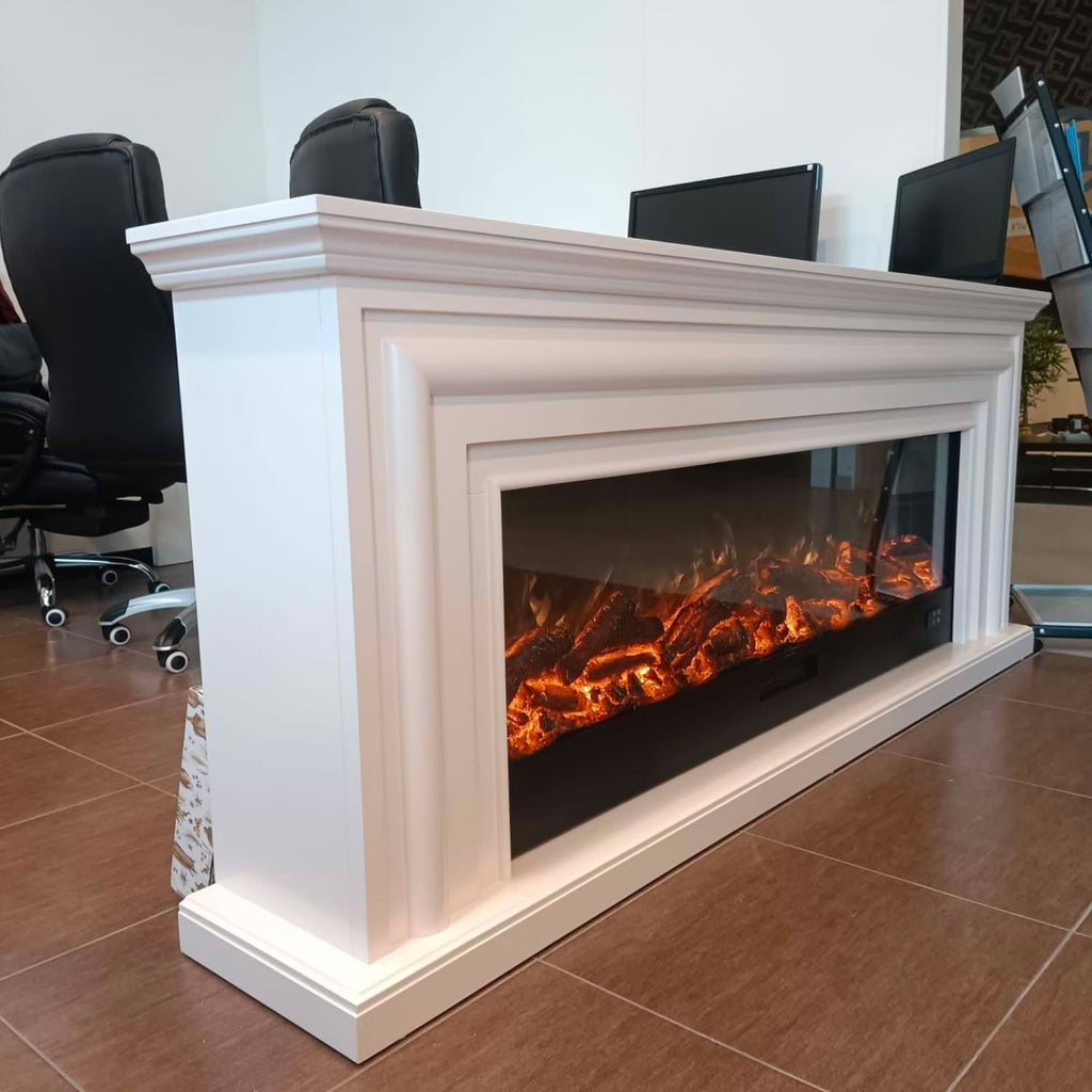 Rivestimento del camino in ottimo legno MDF, l'inserto ha struttura metallica, realizzata con pannelli laminati a freddo