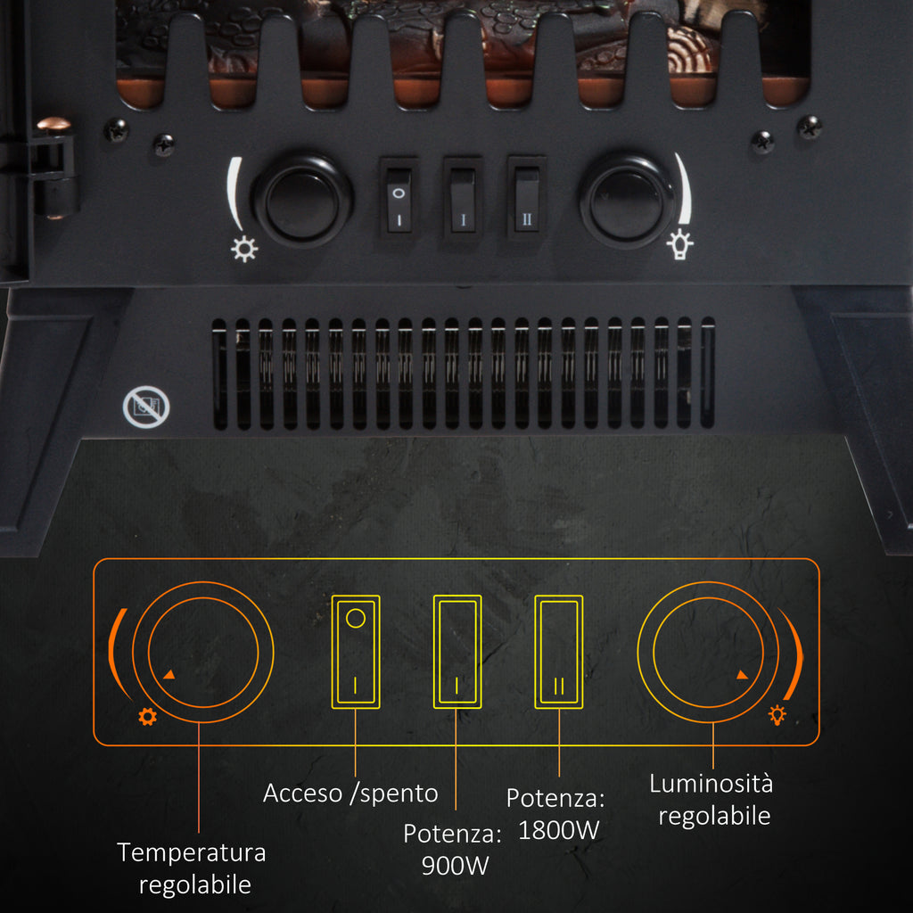 Camino Elettrico da Terra Effetto Fiamma 1800W Nero