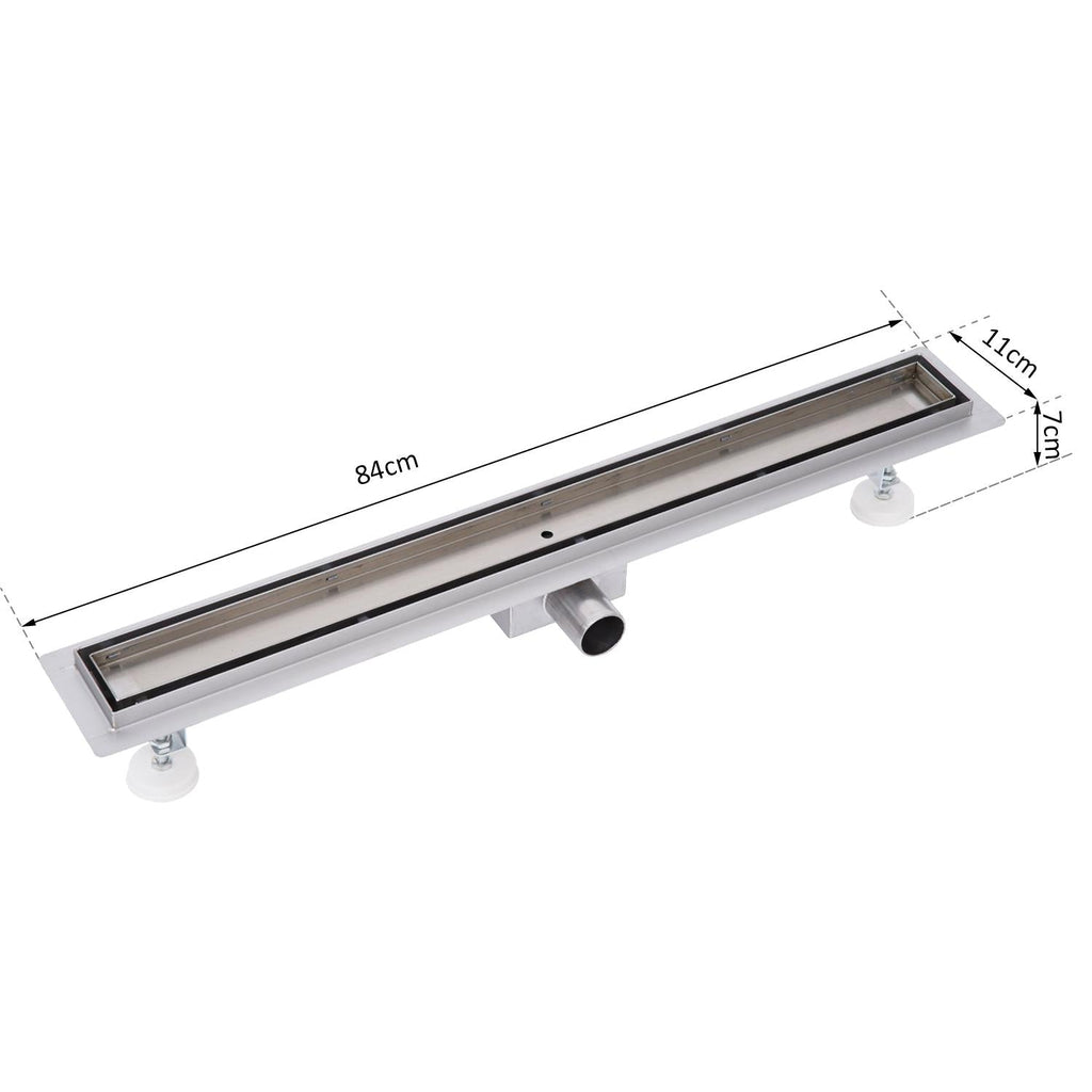 Canalina di Scarico Doccia a Pavimento in Acciaio Inox Piastrellabile 84x11x7 cm