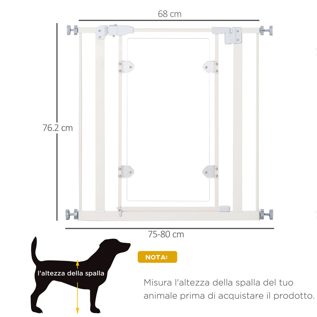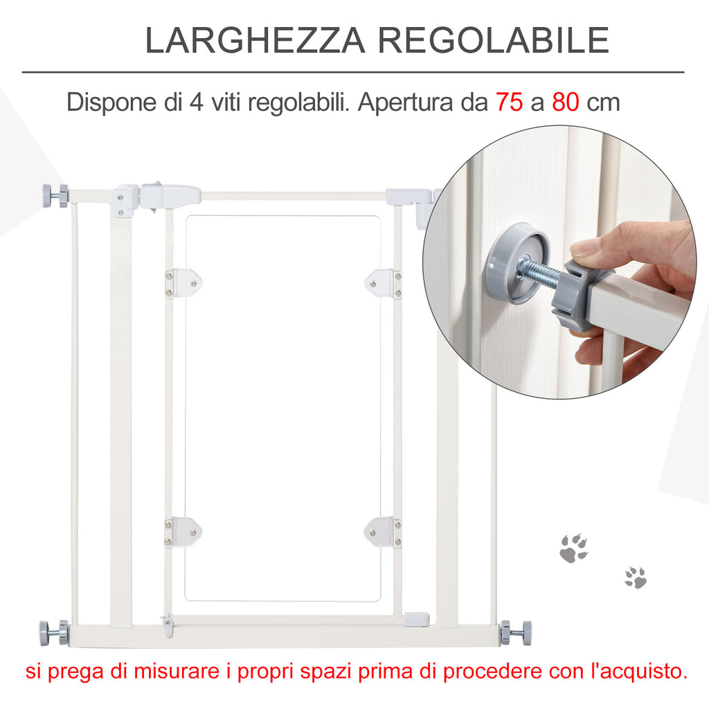 Cancelletto di Sicurezza per Animali Domestici 76,9-81,9 cm in Ferro Bianco