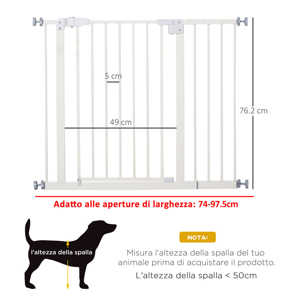 - Questo cancello si adatta a queste aperture: Con estensione: 91.5-97.5 cm. Senza estensione: 74-80 cm. Si prega di misurare l'apertura prima di acquistare
