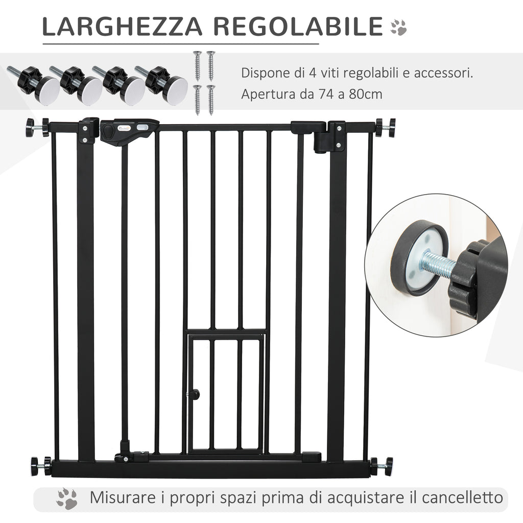 Cancelletto Sicurezza Regolabile per Cani 74-80 cm con Chiusura Automatica Nero