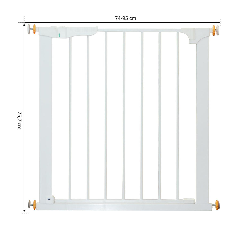Stai cercando un cancelletto di sicurezza per i tuoi animali? Questa porta in metallo bianco ti permette di tenere al sicuro i tuoi cani e i tuoi gatti in modo semplice e veloce. Grazie alla tecnologia a pressione puoi installarlo in un attimo: ti basterà fissare il cancello tra due pareti, senza il bisogno di usare il trapano per fare dei fori. Grazie al suo design espandibile, puoi regolarlo in larghezza (74-95 cm) in base alle esigenze del tuo spazio. Proteggi subito i tuoi amici a quattro zampe con questo pratico cancelletto !