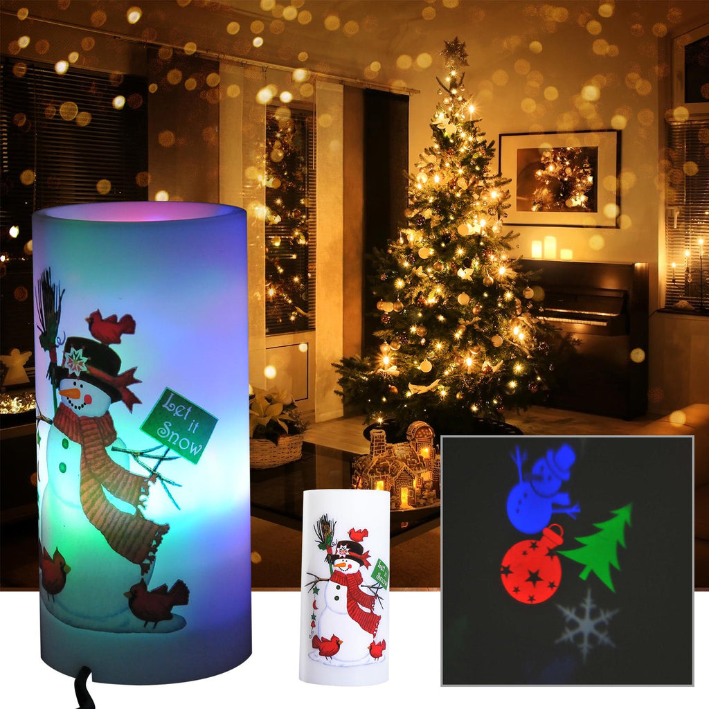 Candela di Natale LED con Proiettore 4 Effetti di Luce Bianco Ø7x15 cm
