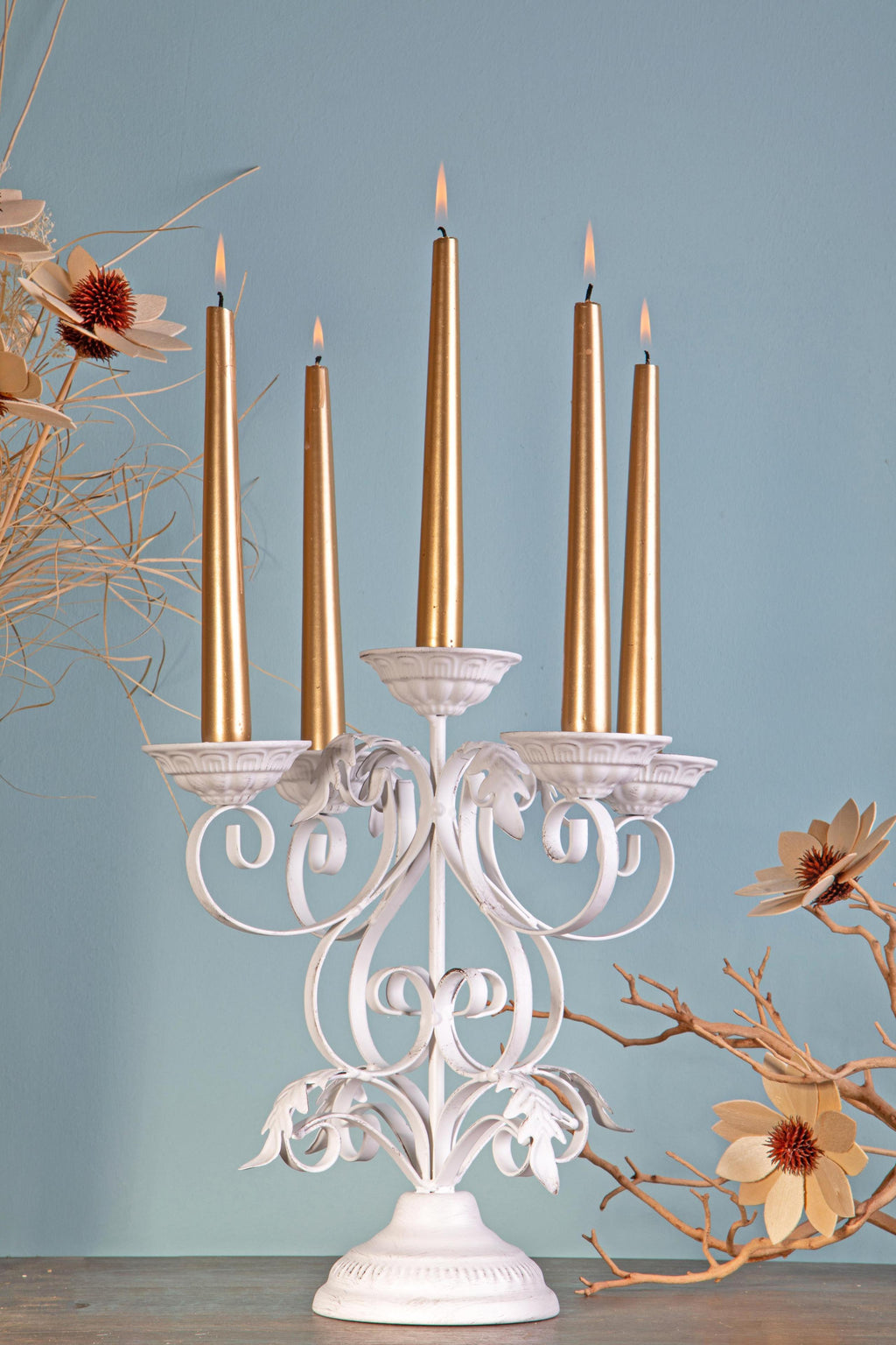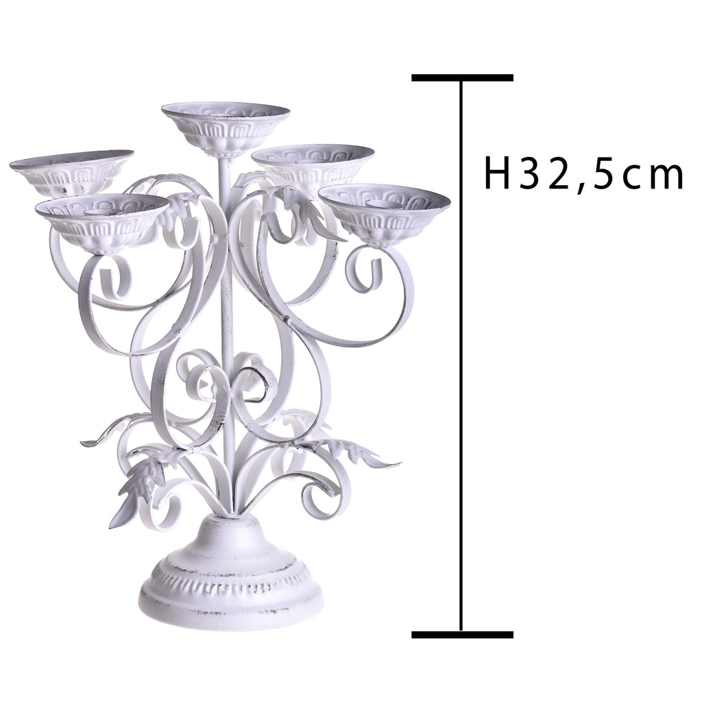 Candeliere Lavorato Composto da 5 Bracci Altezza 32,5 cm Bianco