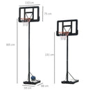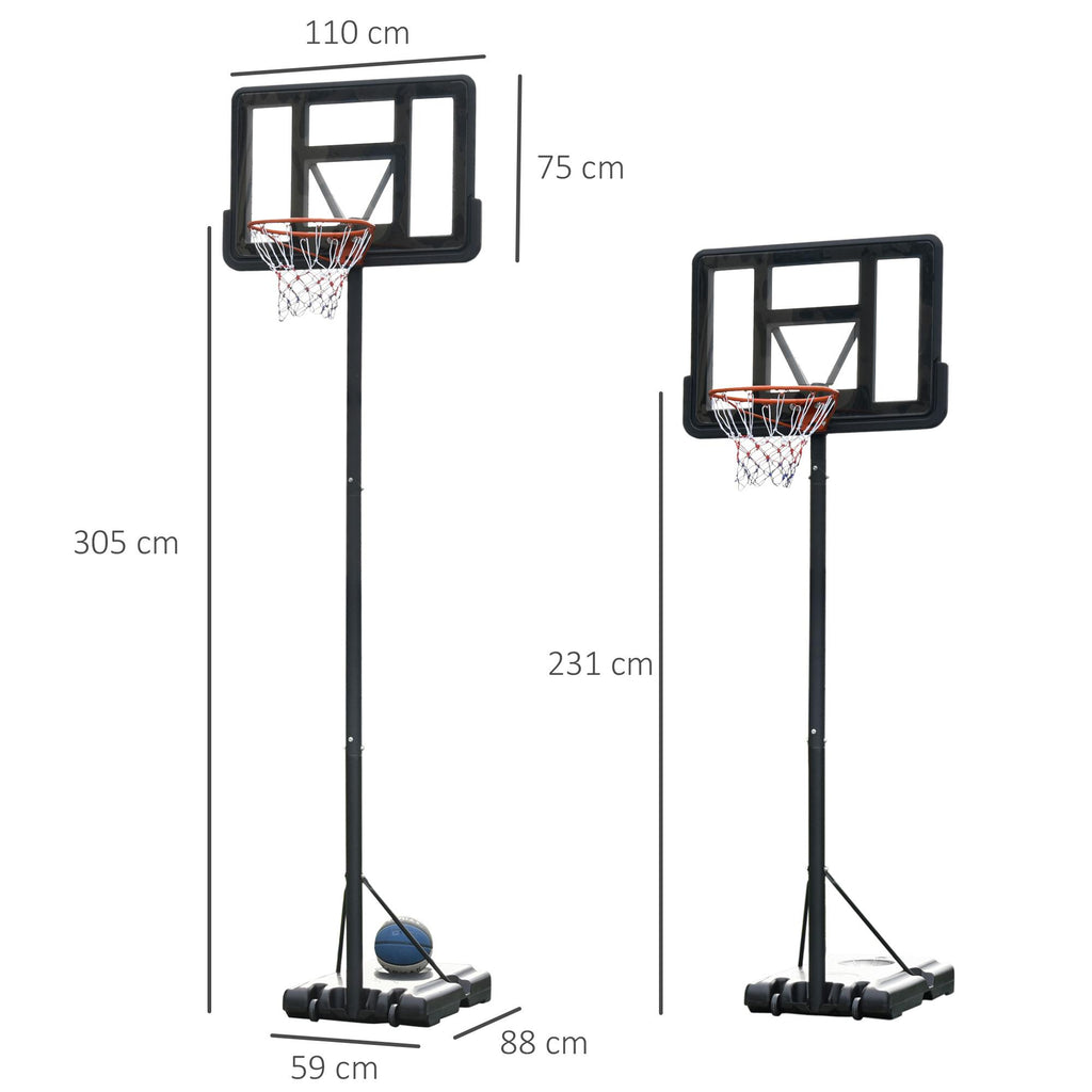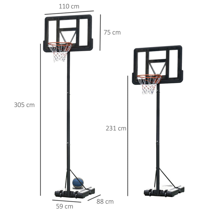 Canestro Basket da Esterno Altezza Regolabile 231-305 cm in Acciaio con Ruote Nero