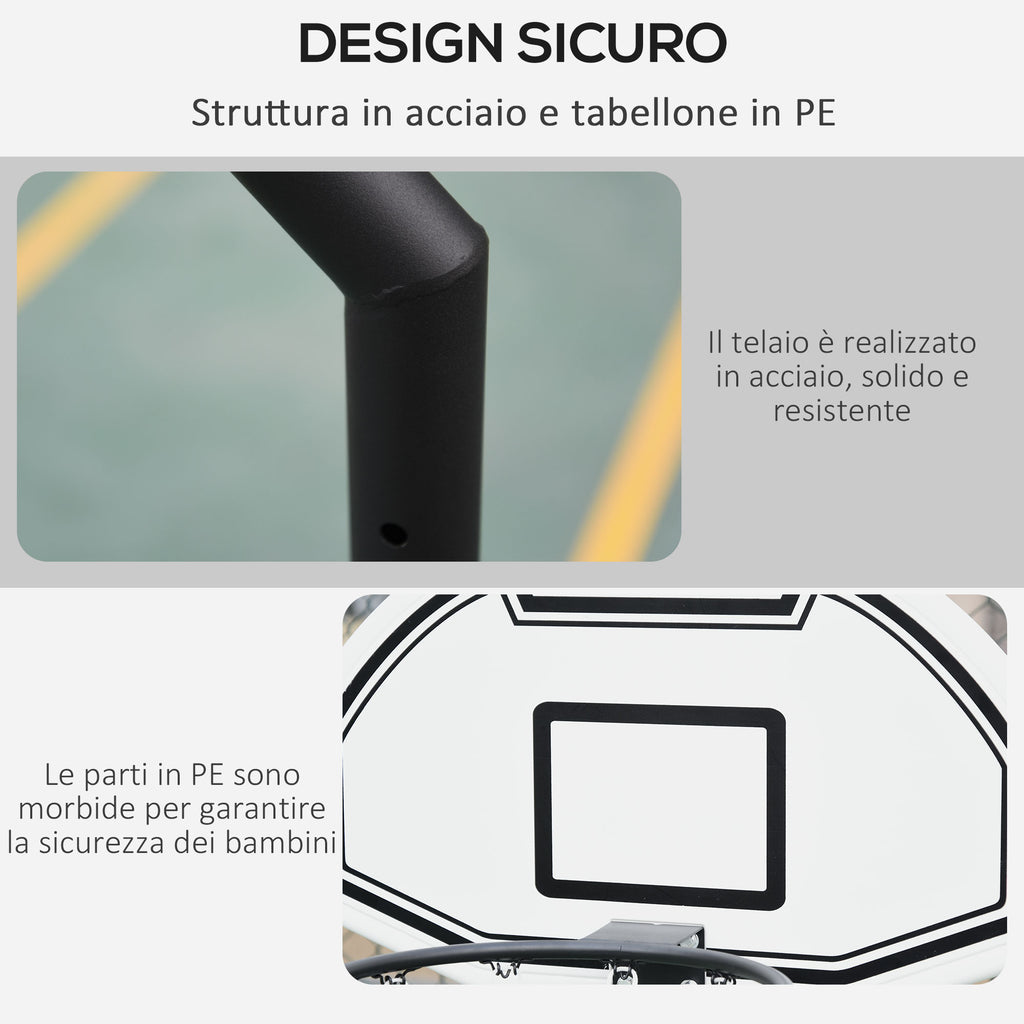 Canestro da Basket da Esterno per Bambini Altezza Regolabile 132,5-161,5 cm Multicolore