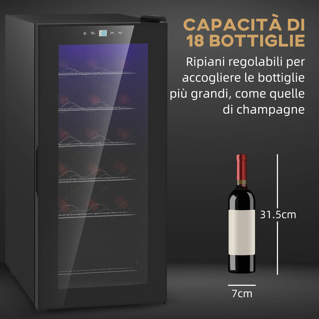 Cantinetta Frigorifero 18 Bottiglie di Vino Display e Luce LED e Controllo Temperatura