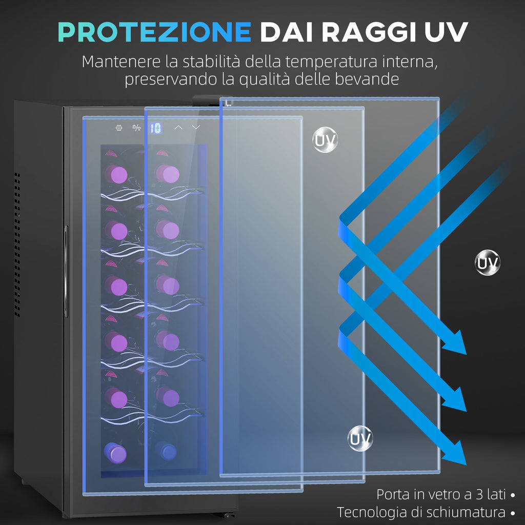 Cantinetta Vino Refrigerata per 12 Bottiglie Doppio Controllo Temperatura Ripiani Regolabili e Luci Nero