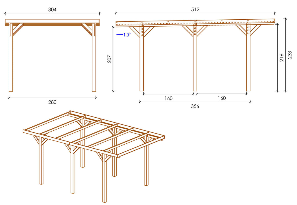Carpot Box Auto Singolo Senza Copertura 304x512 cm in Legno