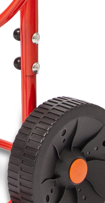Carrello avvolgitubo professionale, in acciaio verniciato con polvere poliestere, con caratteristiche uniche. Può raccogliere fino a 80 metri di tubo 3/4. Dotato di manovella in acciaio ricoperto con plastica. Fornito con due portagomma in ottone per tubo 3/4. Il telaio, realizzato con un unico tubo senza saldature, ed il rullo con avvolgimento laterale assicurano robustezza e stabilità le quattro ruote di grande diametro permettono di spostare il carrello senza alcuno sforzo.