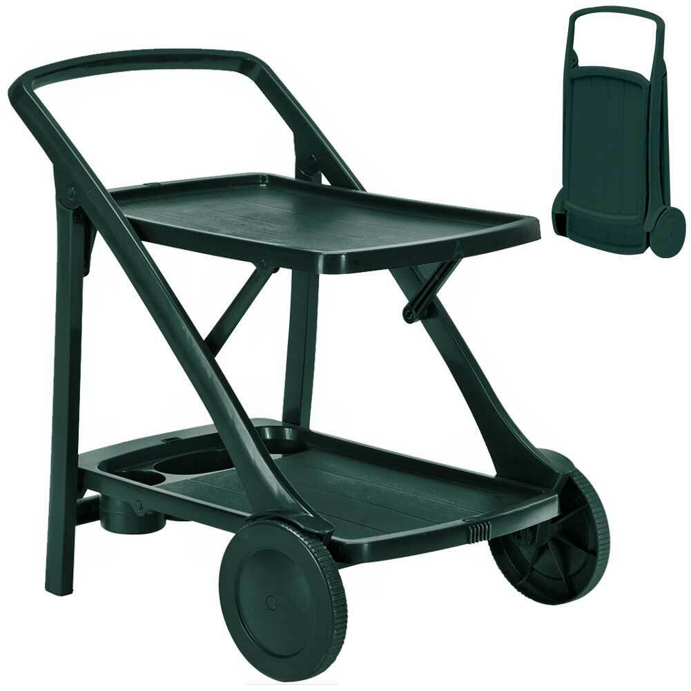 1 x Carrello Cucina Portavivande Esterno in Resina con Vassoio Portabottiglie Verde
