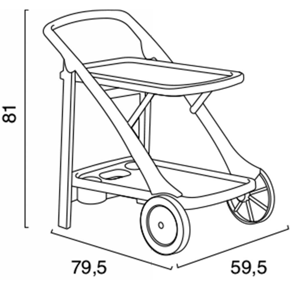 Dalle dimensioni di H81 x 79,5 x 59,5 cm questo carrello sarà l'ideale per portare le portate dalla cucina agli ambienti esterni della tua casa.