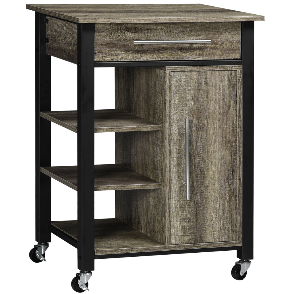 Questo carrello da cucina è l'assistente di cui hai bisogno in casa. Grazie alle 4 ruote, di cui 2 con freno, puoi spostare facilmente il carrello portavivande ovunque ne hai bisogno. Dotato di un pratico cassetto, un armadietto a un'anta e 3 mensole, ti offre tanto spazio per tenere in ordine accessori per la cucina e alimenti. Lasciati aiutare nelle faccende quotidiane o nelle feste con gli amici dal nostro carrello per cucina!