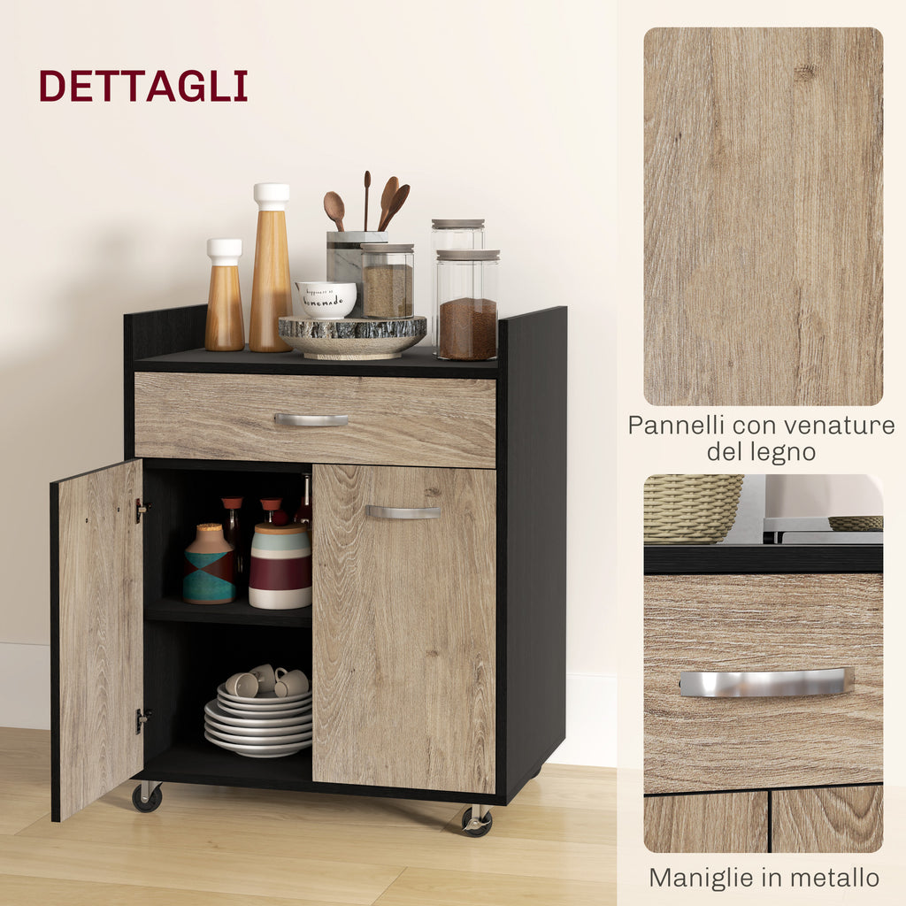 Carrello da Cucina con Armadietto e Cassetto 60x40x77 cm in Legno Nero