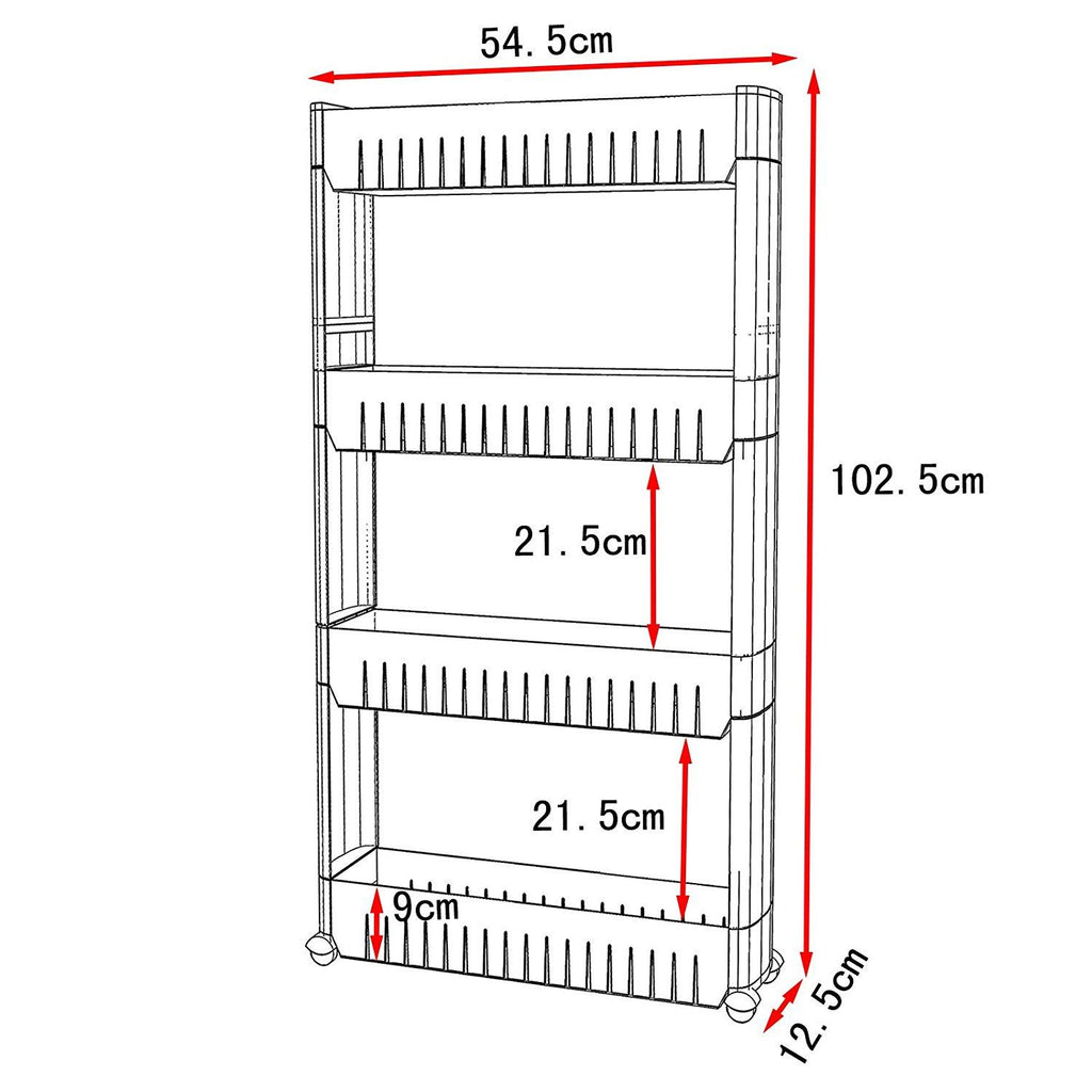 Carrello da Cucina in Polipropilene 54x12,5x103 cm 4 Ripiani Rizzetti Tiny