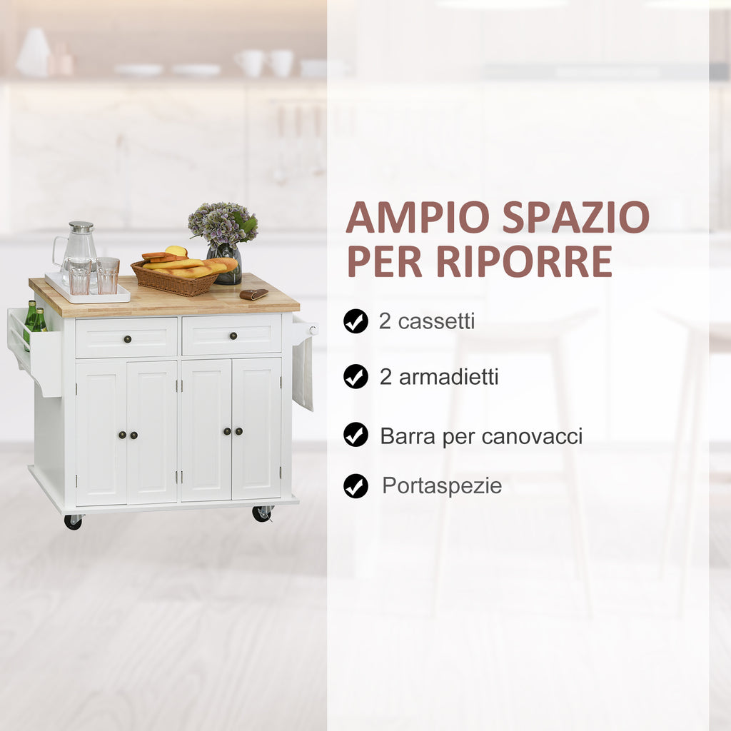 Carrello da Cucina Portavivande con Cassetti e Portaspezie 111x44,5x82,5 cm in Legno Bianco