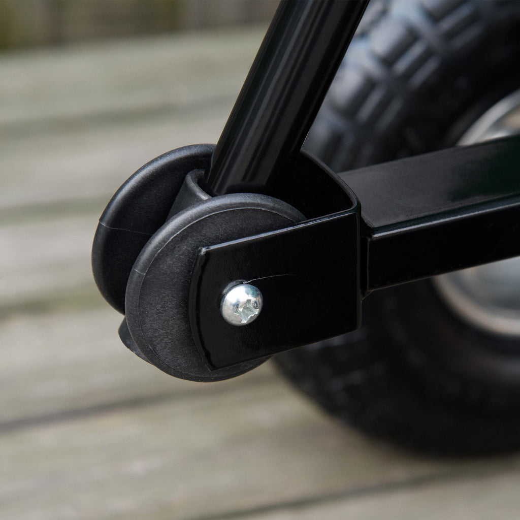 - QUATTRO RUOTE: Le quattro ruote sono gonfiate e la superficie che aderisce al terreno in modo sicuro per mantenere l'equilibrio del carrello da giardino.